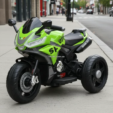 Мотоцикл для детей M 6267 EL-5 зеленый, два двигателя, музыка, свет