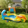 Игровой центр Intex 57444 привлекает внимание ярким и красочным дизайном, дополненным головой динозавра и горкой, по которой ребенок может весело скатываться в бассейн, а встроенный водопад и пальма-фонтан добавляют эффект настоящего водного парка, создавая приятные брызги и атмосферу тропического отдыха прямо у вас дома.