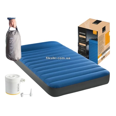 Надувной велюр матрас Intex 64011 с насосом, 191 х 99 х 22 см.