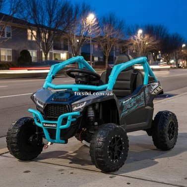 Детский электромобиль JS 330 EBLR-2-4 (24V) багги черно-синий, мягкое сиденье, Kawasaki
