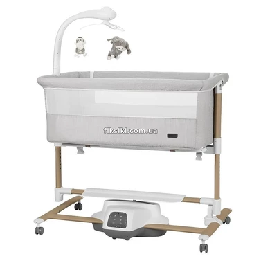 Детская кроватка - качалка Carrello Bloom CRL-10304 Silk Beige Wooden серо-бежевая, откидной бортик