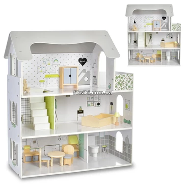 Деревянный кукольный домик MD 1669 трехэтажный с мебелью