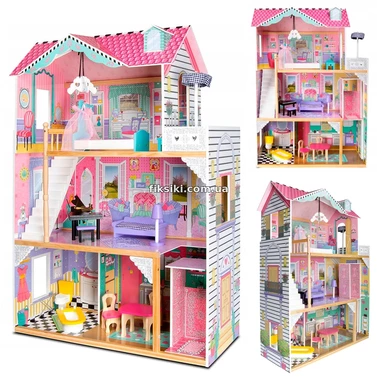 Деревянный кукольный домик MD 1428 трехэтажный с мебелью
