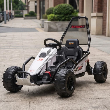 Детский электрокарт M 6374EL-1(24V) белый - выполнен в виде спортивного картинга, что позволяет ребенку почувствовать себя за рулем настоящего авто, при этом продуманный дизайн делает его не только ярким и стильным, но и максимально удобным для ежедневного использования, благодаря чему такая модель станет отличным подарком, который будет радовать не один день и подарит массу положительных эмоций.