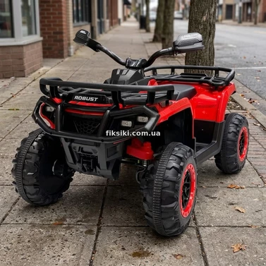 Квадроцикл M 6351EBLR-3 красный привлекает внимание стильным и реалистичным дизайном, светящиеся фары делают поездки еще более эффектными, а встроенный плеер позволяет включать любимую музыку, создавая настроение во время катания, эта модель имеет большие EVA колеса, которые обеспечивают мягкую и комфортную езду даже по неровной поверхности.